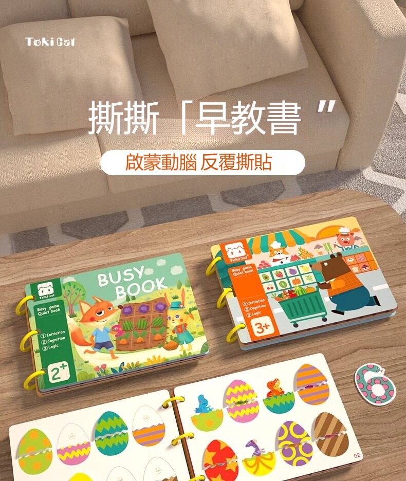 安靜書/寶寶撕撕書(嬰兒手撕粘貼書/早教貼紙書/幼兒啟蒙益智玩具)✅ 可重複撕貼,玩不壞 → 魔鬼氈設計,貼紙可以反覆撕下來、黏上去,寶寶怎麼玩都不膩 ✅ 安靜書=讓爸媽安靜的書 → 寶寶專心撕貼,不哭不鬧,爸媽終於能喘口氣 ✅ 多種主題,邊玩邊學 → 動物園、交通工具、蔬菜水果、數字顏色、日常生活,一本一種認知 ✅ 訓練手眼協調+小肌肉 → 撕貼動作練手指精細度,為以後寫字打基礎