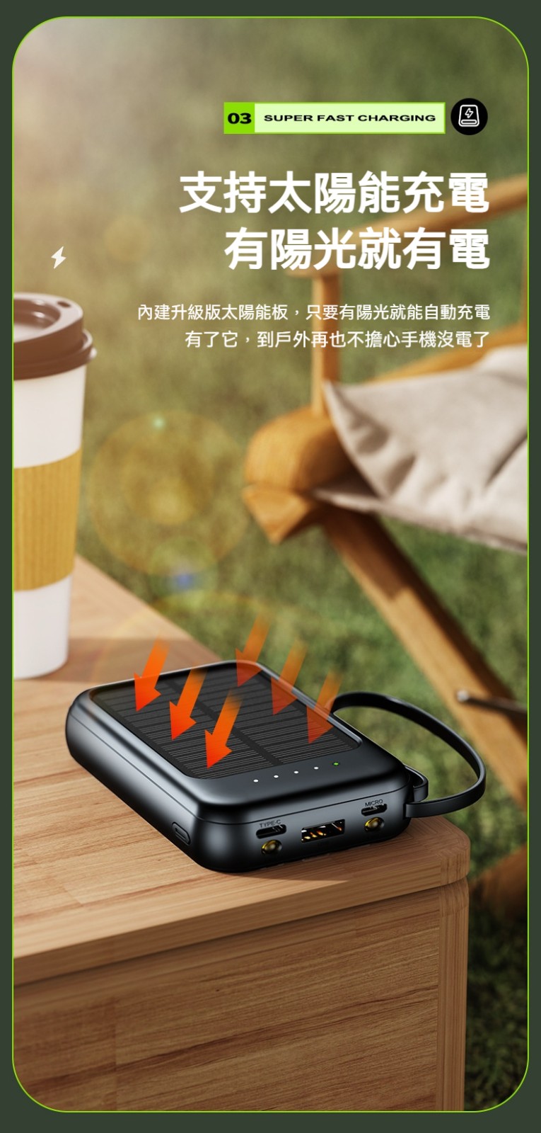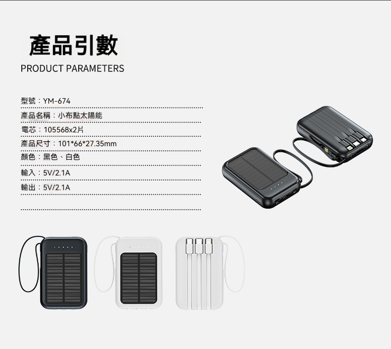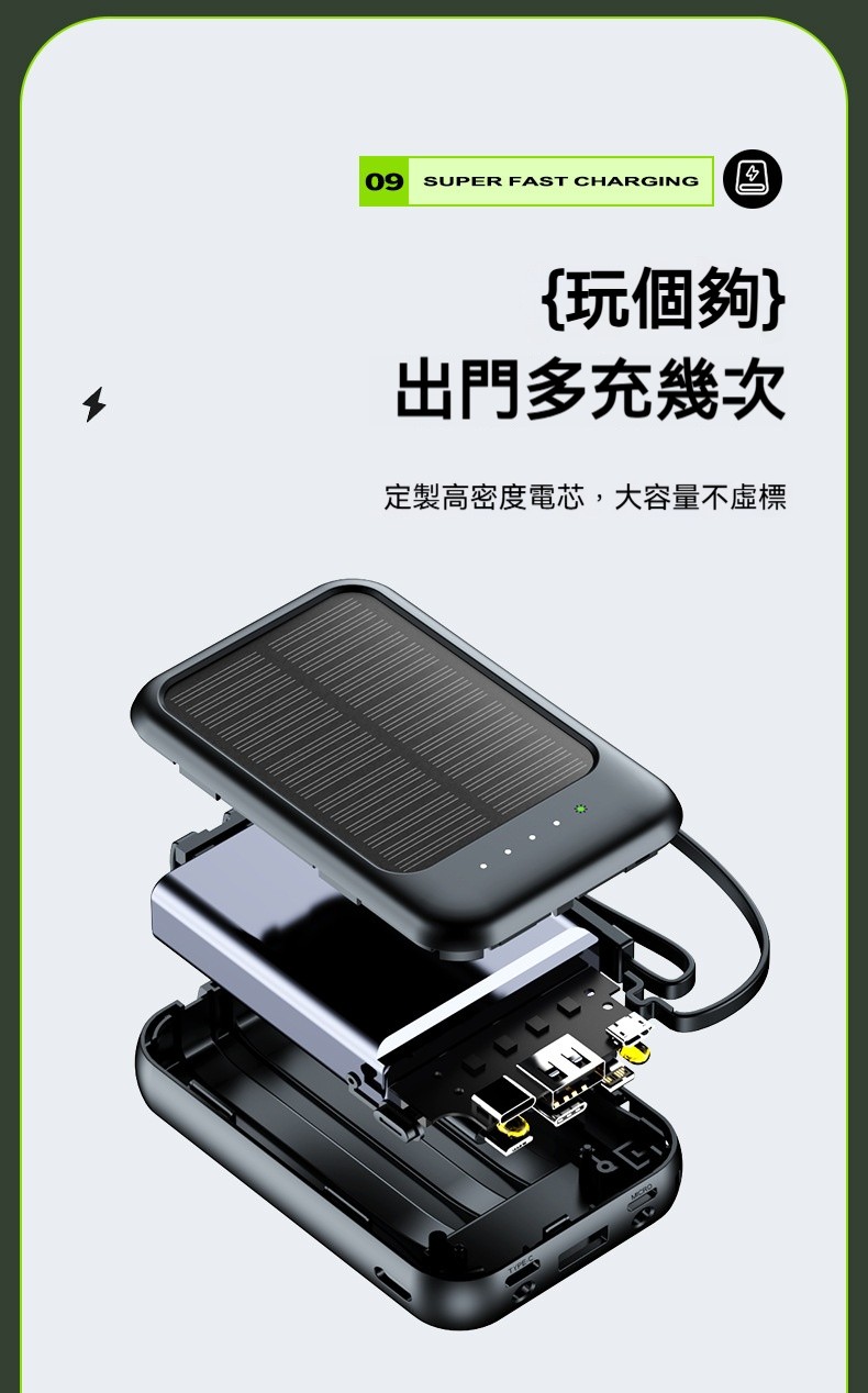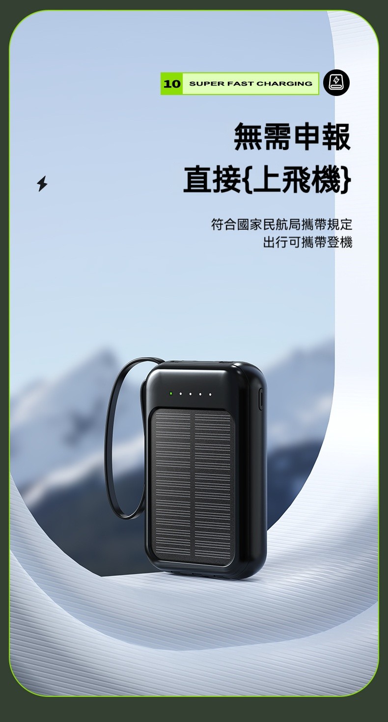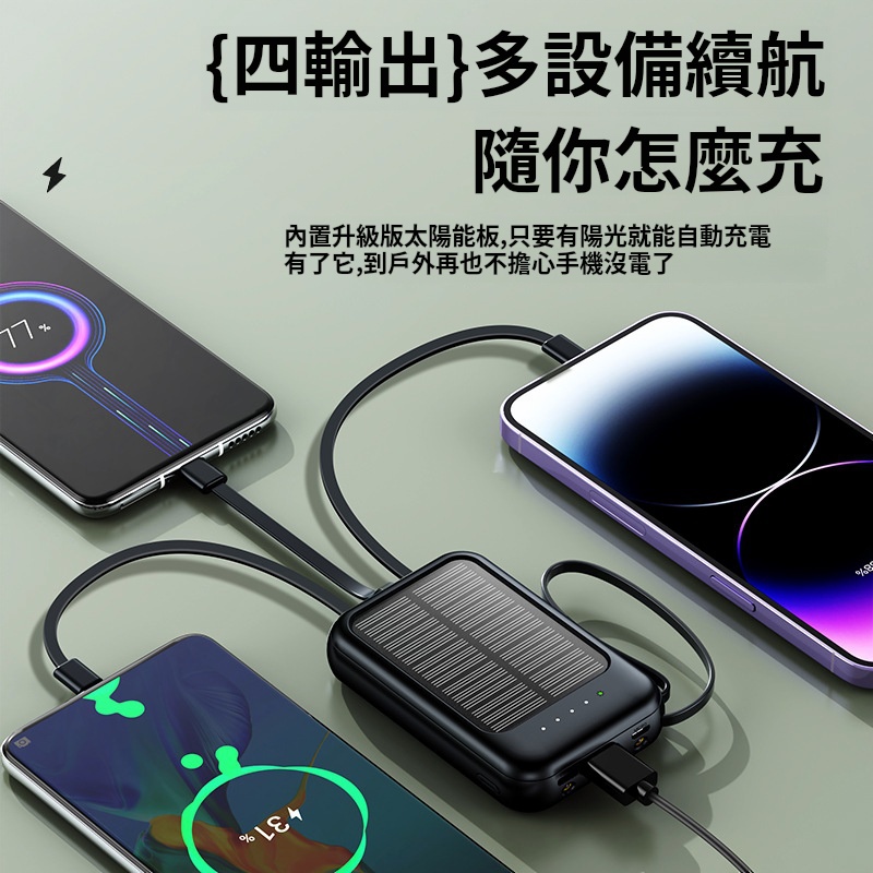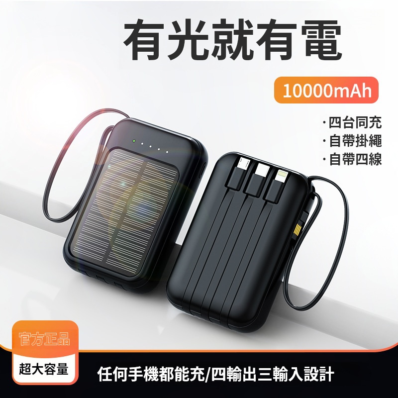 太陽能充電寶✅自帶四線 | 有光就能充✅客製化高密度電芯 | 大容量不虛標✅雙色簡約設計 | 黑/白兩色任君選