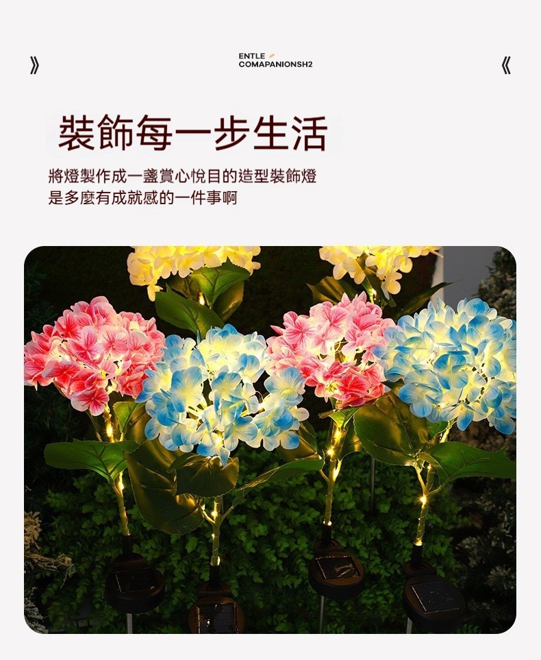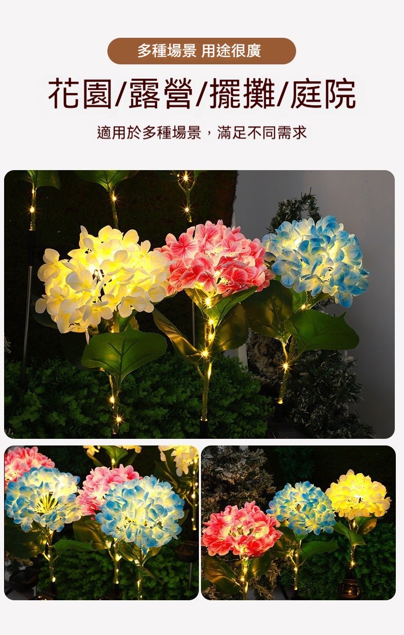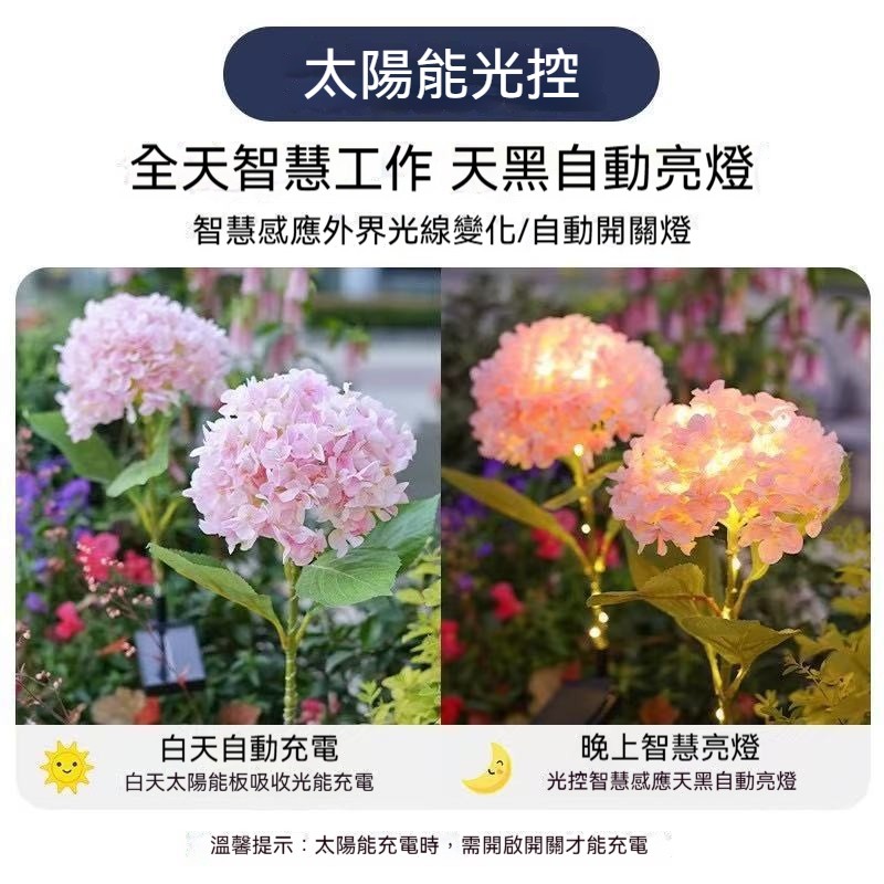 太陽能仿真繡球花✅適用於多種場景 | 滿足不同需求✅全天智慧工作 | 天黑自動亮燈✅全年0電費 | 多晶矽太陽能板