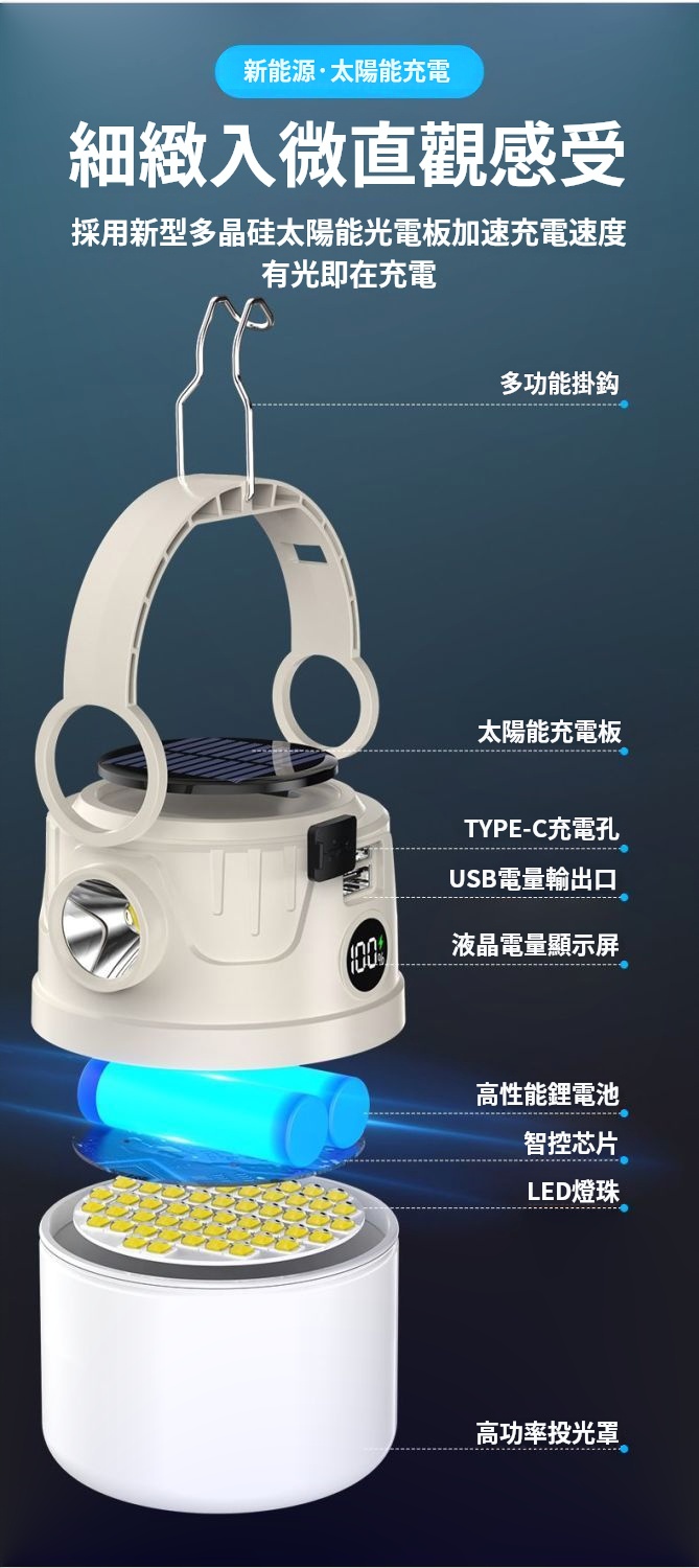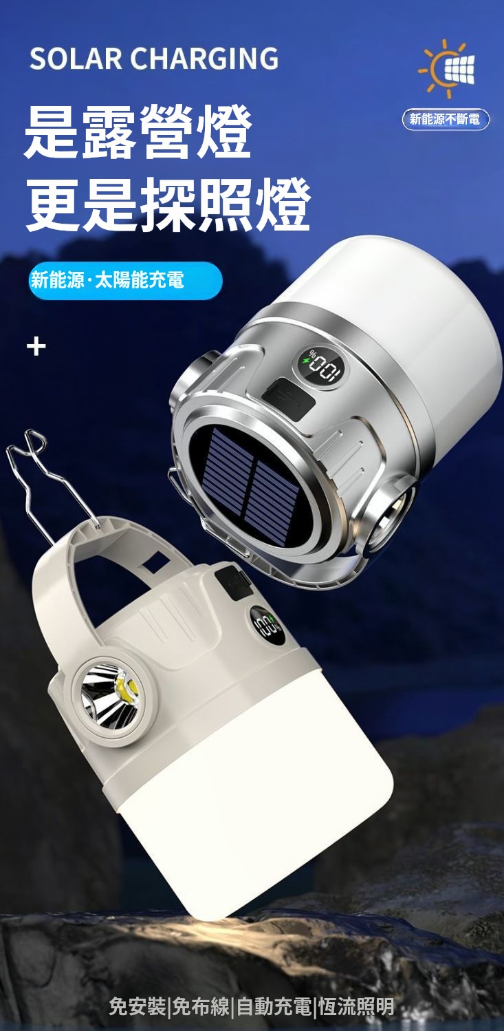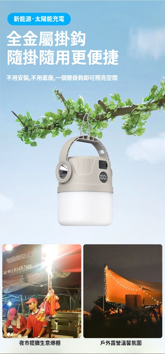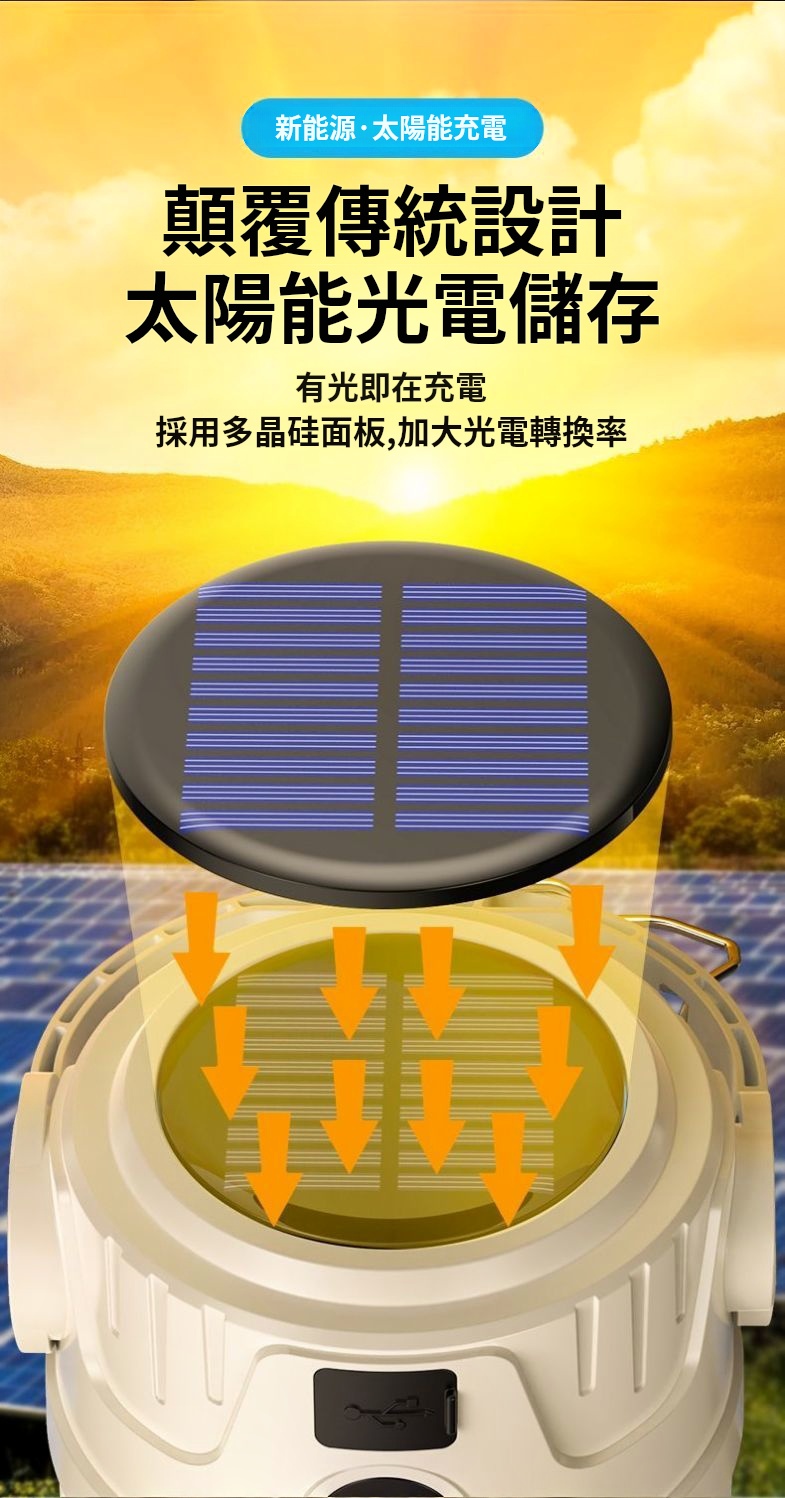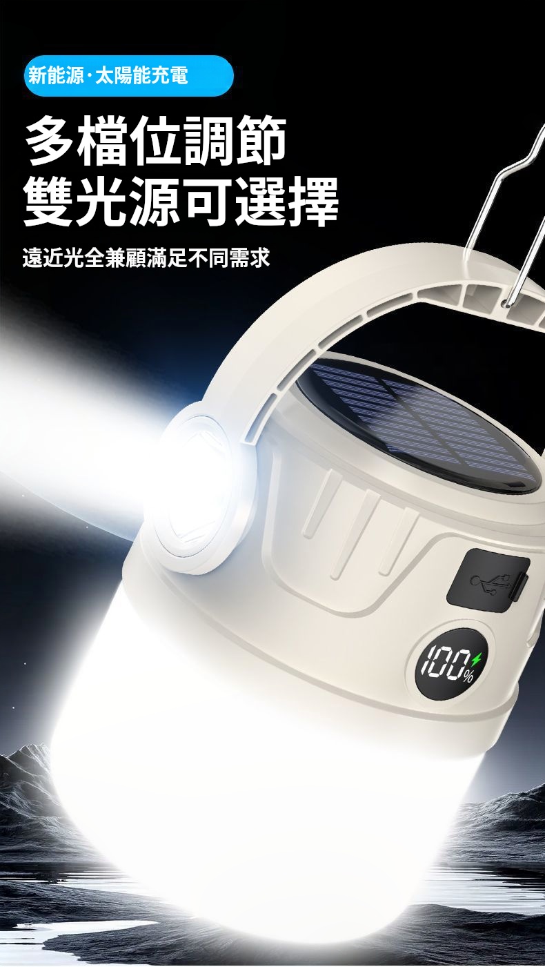 太陽能露營燈✅多檔位調節 | 雙光源可選擇✅高顯色燈珠 | 還原真實色彩✅USB電量輸出 | 可當行動電源使用